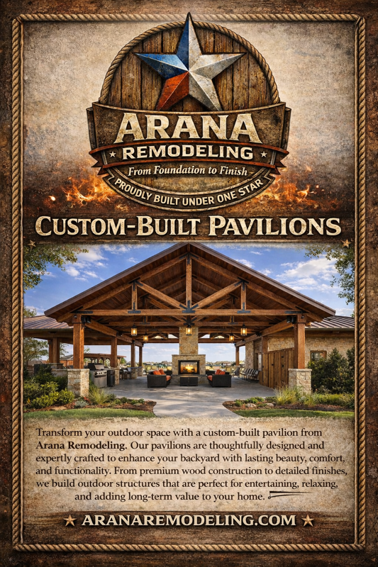 Patio covers and pavilions in Houston require thoughtful design to accommodate climate conditions and regional construction standards. By serving a wide range of surrounding communities, Arana Remodeling delivers consistent craftsmanship and dependable outdoor construction results across every project.
